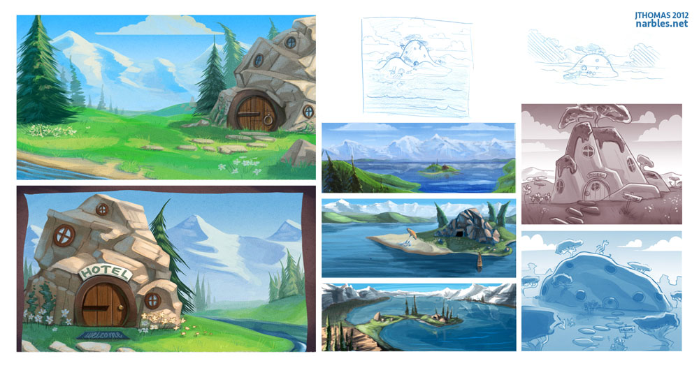Environment designs and completed background plates for children's eBook app. Photoshop CS6