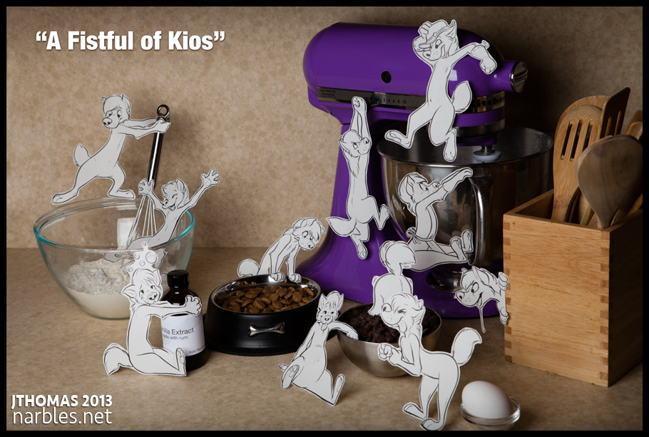 Cartoon cutout/photography collaboration for a mock cooking show, hosted by tiny paper animals.