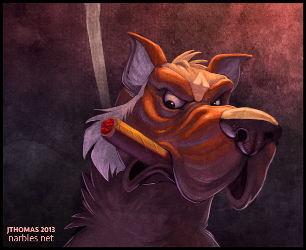 Grumpy Akita mobster type, painted as gift art. Photoshop CS6